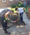 die Steine beim Setzen gut mit Sand unterfüttern, alle Steine in gleicher Höhe fachgerecht zu verlegen, anzuwenden sowie umzusetzen.